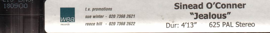 | * Sinead O'Connor / Jealous (2000) promo-video; (Wea Records, no catalogue) - Jealous (the video clip) |