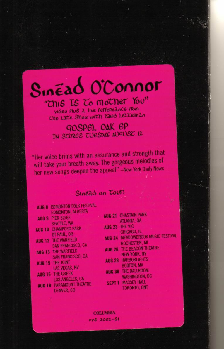 * Sinéad O'Connor EPK (Electronic Press Kit) (1992) promo-video; (Chrysalis sleeve, no catalogue nr.)