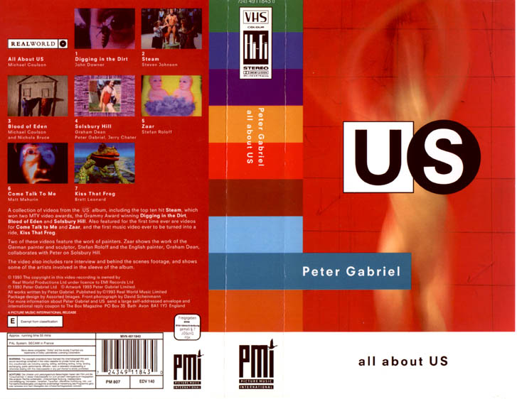 * Peter Gabriel / All About Us (1993) video; (GER: 7243 4911843 0) laserdisc; (UK: plmpa 00911) - Blood of Eden (the clip + the making of...) - Come talk to me (the clip + the making of...) |